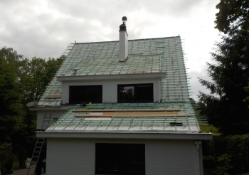Renouvellement de la toiture principale y compris la toiture annexe par la pose d'une isolation Bauder 10 cm d'épaisseur et des nouvelles tuiles de type Pottelberg anthracite.