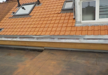 Renouvellement de la toiture par la pose d'une isolation de type Bauder (subventionnée par les différentes primes) et la pose de tuiles de type Pottelberg 993 de teinte rouge.