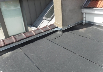 Rénovation de la plate-forme par la pose sur l'étanchéité existante d'une isolation en panneaux de mousse polyuréthane de 10 cm d'épaisseur et 2 couches d'étanchéité de type Duo pailleté anthracite.